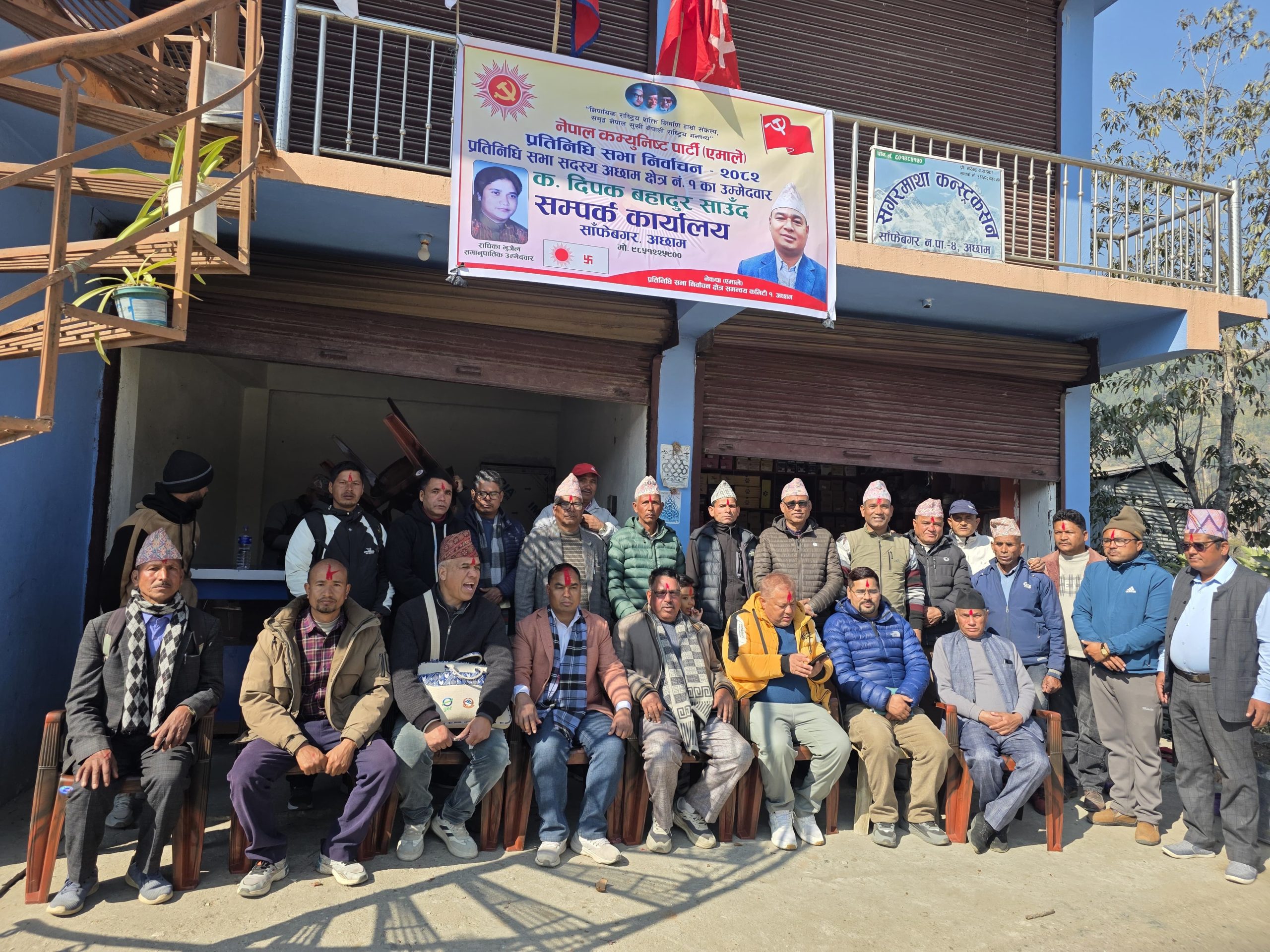अछाम स्नेकपा एमाले अछाम क्षेत्र नम्बर १ ले आगामी फागुन २१ गते हुने निर्वाचनलाई लक्षित गर्दै साँफेबगरमा उम्मेदवारहरुको सम्पर्क कार्यालय उद्घाटन गरेको छ ।