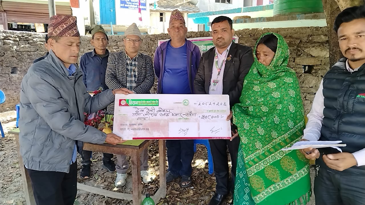 सहकारीले मृतक बोहराकी श्रीमती देव देवी बोहरालाई कर्जा मिनाह रकम तीन लाख आठ हजारकोे चेक उपलब्ध गराईएको हो।